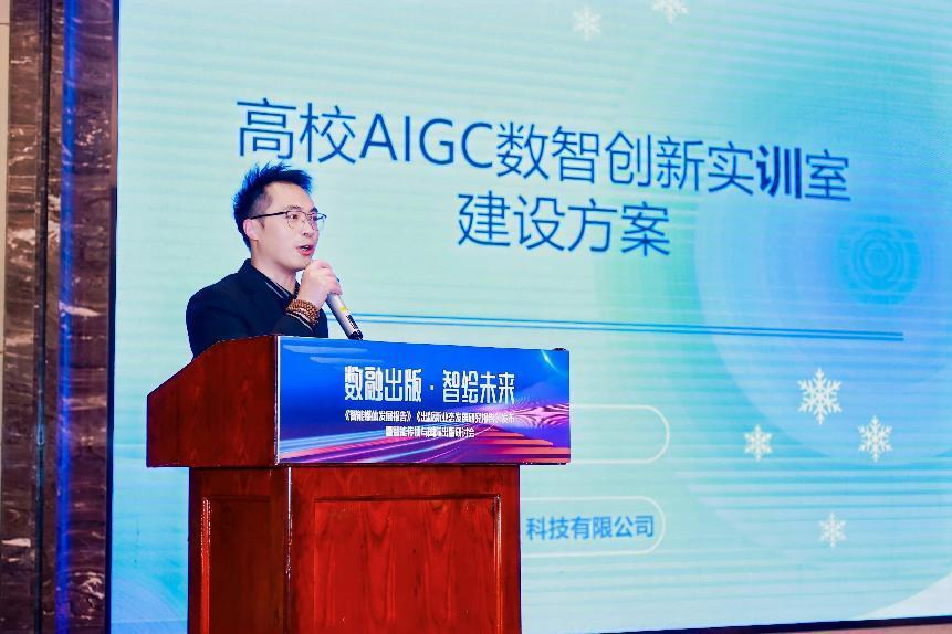 时空节拍(杭州)科技有限公司董事长韩新昌作了题为《高校AIGC数智创新实训室建设方案》报告。他以浙江传媒学院AIGC与国际出版重点实验室等为案例,探讨了与高校强化产教融合、培养AIGC专业人才的可能性。