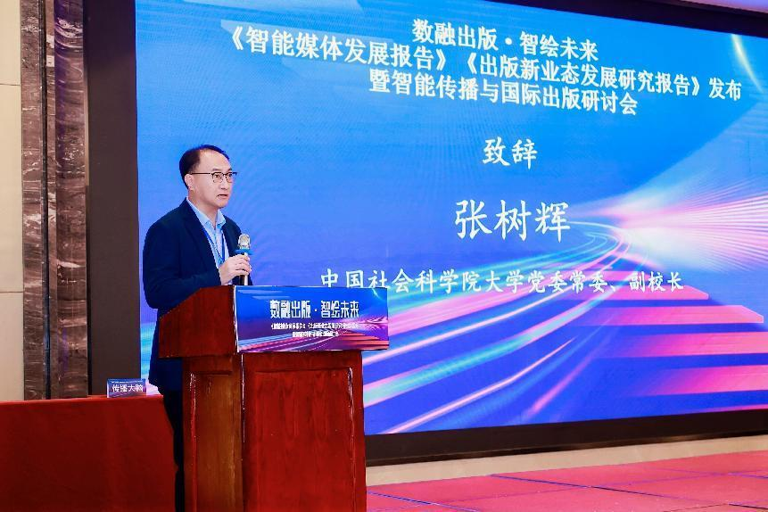 中国社会科学院大学党委常委、副校长张树辉在致辞中表示,智能媒体正在重塑新闻出版的生态和模式,并带来了前所未有的机遇和挑战。中国社会科学院大学与浙江传媒学院有着深厚的友谊,双方要以研究报告为纽带,持续深化两校全方位合作,携手培养适应数字时代的高素质新闻出版人才。