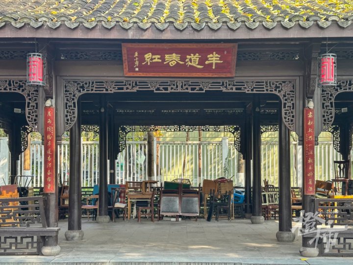 就在这片红杉林附近,还有湖墅八景之一半道春红。