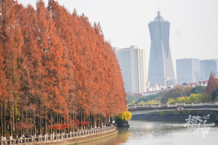 在潮王桥北东线,也是杉树最红的季节。行走在河岸上,如同在树林中穿行。
