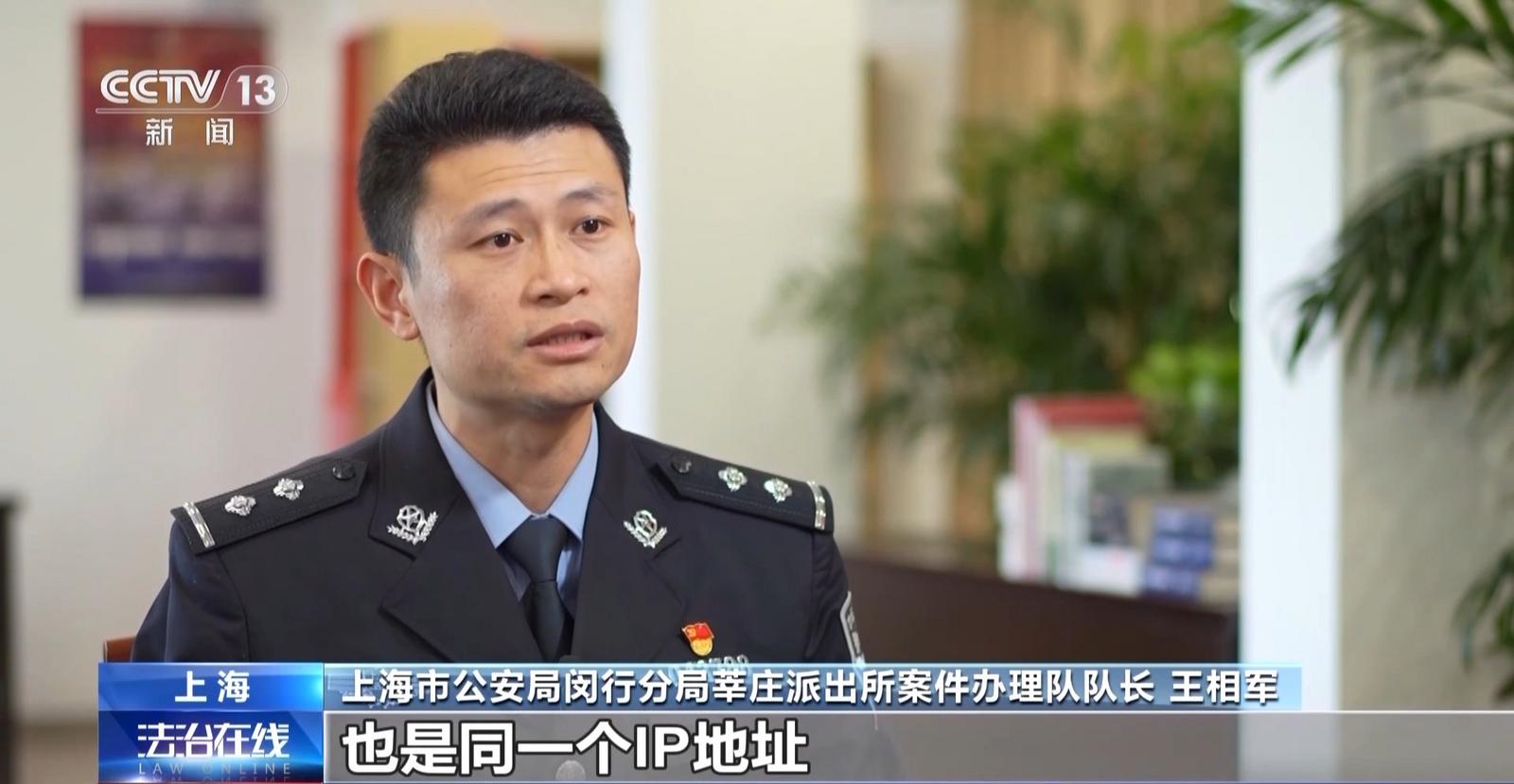 上海市公安局闵行分局莘庄派出所案件办理队队长 王相军:司机端的IP地址和乘客所使用的账号的IP地址是同一个IP地址,等于说是同一个手机,既操作了乘客端的发单任务,司机端又通过同一个手机进行了接单。