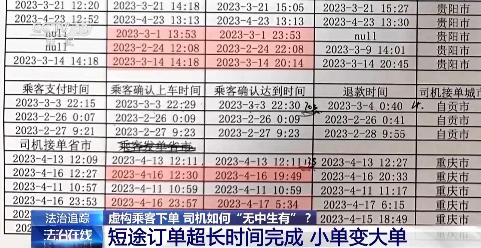 可是,工作人员发现,在一些订单中,原本乘客下的短途订单,司机却用了超过原订单十几倍甚至几十倍的时间来完成。这样一来,原本一个几公里的小订单,摇身一变成了十几公里,甚至是几十公里、几百公里的大订单。