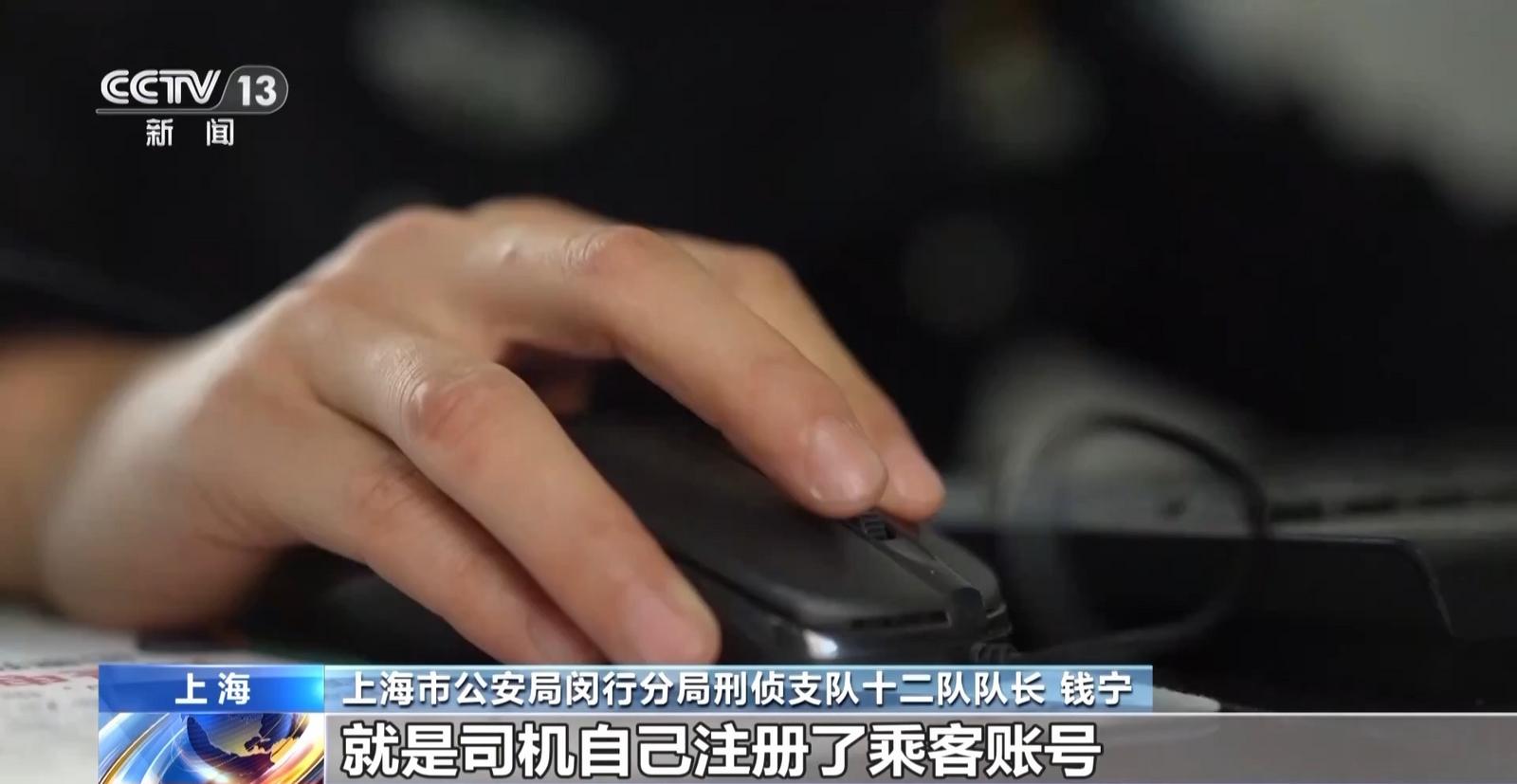 上海市公安局闵行分局刑侦支队十二队队长 钱宁:司机和乘客其实是一伙人,或者我说得再直白一点,司机自己注册了乘客账号,整个订单都是虚假的,我乘客端先支付费用,平台认证,把这笔费用扣除手续费支付给司机以后再用乘客的身份投诉平台,说我根本没上这辆车,把我刚才支付的全款再重新要回来,所以说所有的费用,全都被司机拿走了。