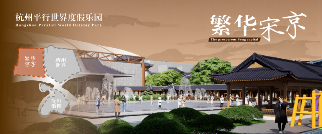 其中,杭州平行世界度假乐园分为“繁华宋京”“未来世界”“奇幻雨林”三大区域。以传奇宋韵到穿越未来的沉浸式体验为亮点,是一个设计超前、国内领先、体验性强的度假乐园。