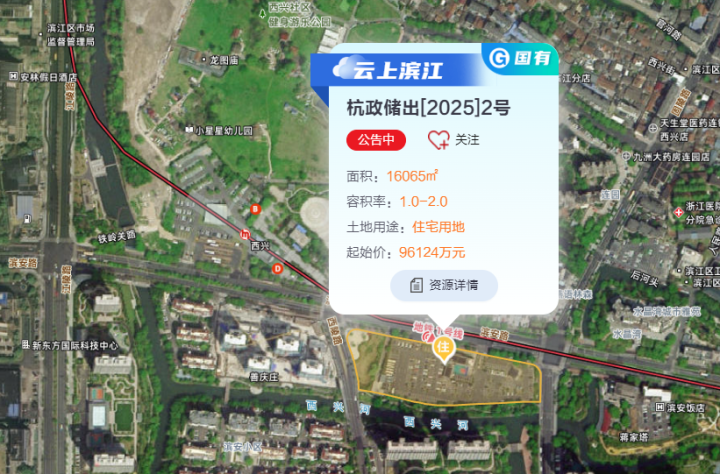 位于滨江西兴的杭政储出[2025]2号地块被滨江集团竞得,成交总价138124万元,折合楼面价42989元/平方米,溢价率43.59%。