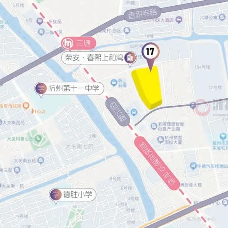 地块位于绍兴路与香积寺路交界的东南面,距离在建地铁15号线三塘站约280米,到地铁5号线东新园站约1公里,目前已经挂牌,楼面起价29931元/㎡,将在4月1日出让。