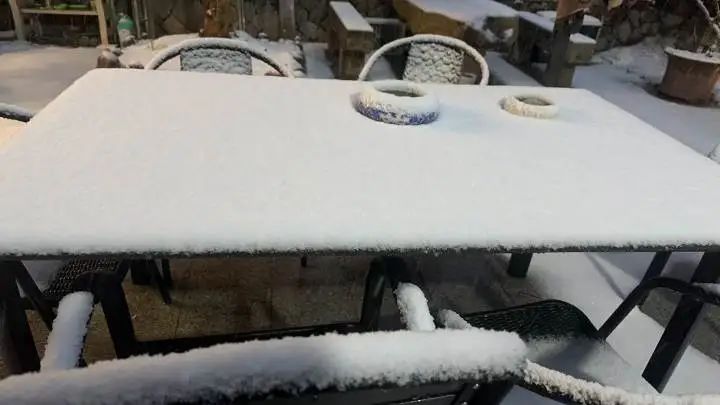 今天下午4点半左右,杭州临安区清凉峰镇浪广村的村民们又“炸”了,通过太子尖上的监控和山上村民反映,雪花纷纷扬扬,越下越大,不到45分钟,海拔1360余米的太子尖驿站周边已经白雪皑皑。