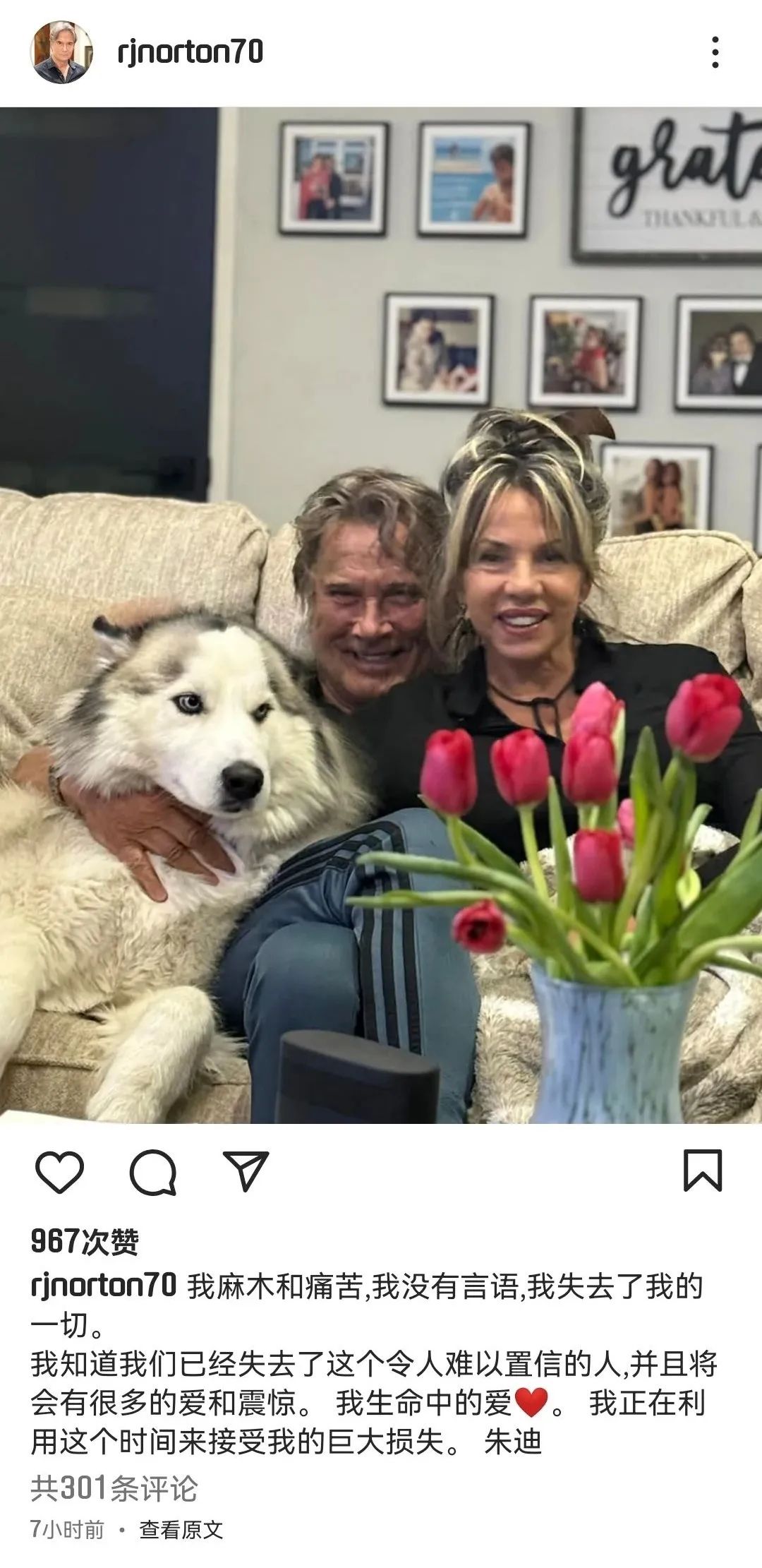 曾参演多部港产电影的澳大利亚动作男星Richard Norton去世,他的妻子Judy在3月30日通过他社交账号宣布了这一噩耗。Judy并未透露丈夫的死因,只发文写道:“我感到麻木且悲痛欲绝,我失去了我的一切,无法言喻。”