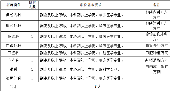 1.副高及以上医卫类专业技术人才。正高级专业技术资格且年龄在50周岁及以下(1975年1月1日及以后出生);副高级专业技术资格且年龄在45周岁及以下(1980年1月1日及以后出生)。特别优秀的年龄可以适当放宽。