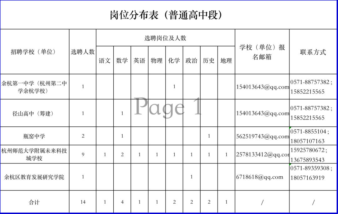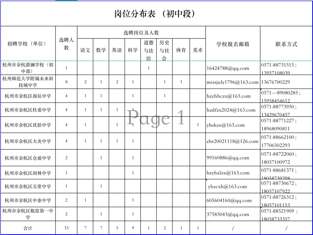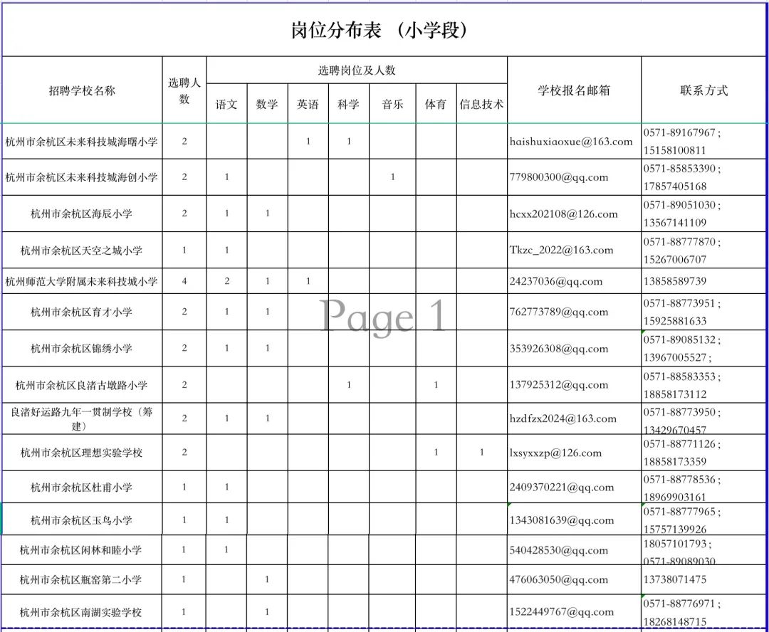 附件1:余杭区2025年公开选聘名优教师岗位分布表
