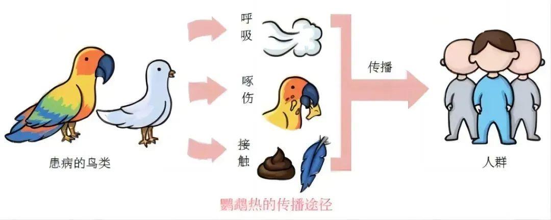 “鹦鹉热”是一种由鹦鹉热衣原体引起的人畜共患传染病。鹦鹉热衣原体不只鹦鹉身上有,鸽子、鸡、鸭等190余种鸟类和禽类,以及野生动物均可携带。最初这种病在鹦鹉爱好者中比较多见,所以叫“鹦鹉热”。