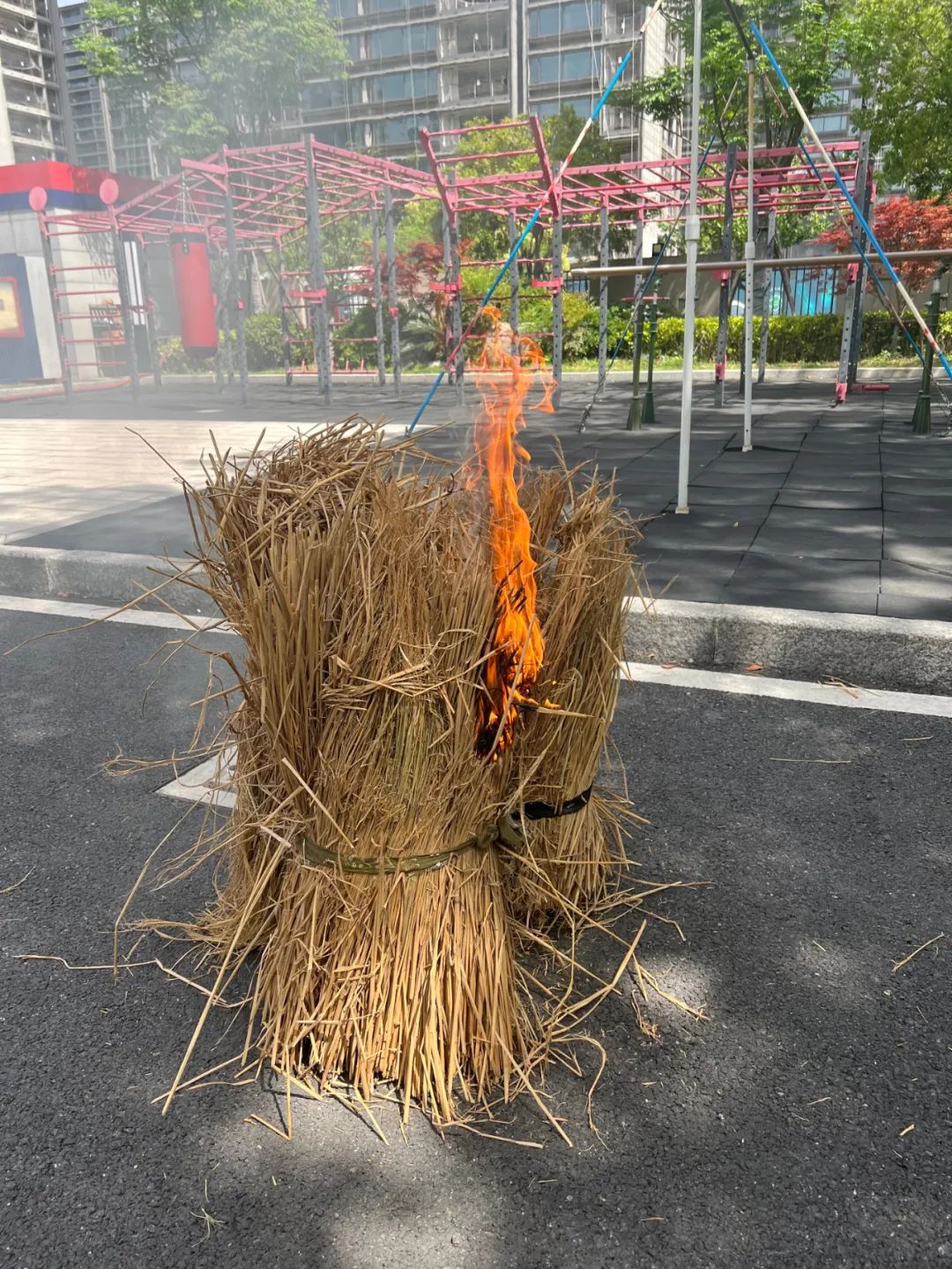 “一般可燃物,如柴草、枯叶等物的燃点在130℃-350℃,都低于烟头的温度,如今路上落叶较多,一点火星就可能引起火灾。”周正解释道。接下来,他又将未熄灭的烟头放置在干稻草堆中。2分钟后,稻草堆冒出白烟。6分钟后,烟头熄灭,稻草堆未起火。不过,当他将未熄灭的烟头放置在干稻草上方,使其与空气充分接触后,白烟越来越浓,温度逐渐上升。过了7分钟,稻草堆被引燃,此时温度达到了150℃。