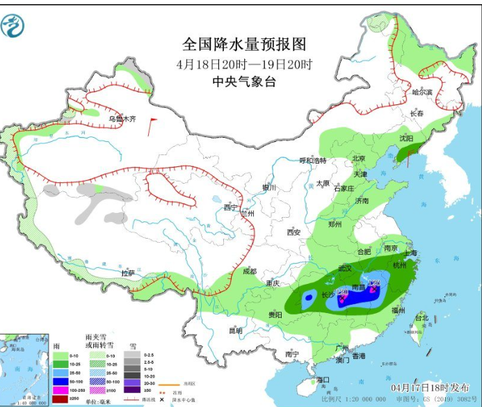 今晚到明天,江汉东南部、江南、华南北部和东部以及贵州东部等地有中到大雨。图源:中央气象台