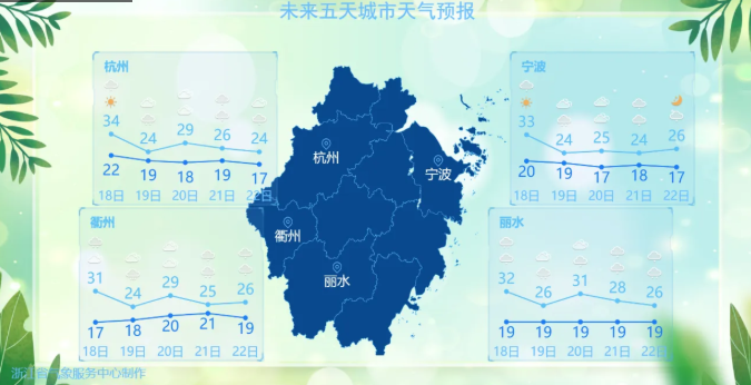 此外,预计浙北和沿海地区部分有5-7级局地8级偏南大风。请注意防范大风带来的不利影响,远离广告牌和临时搭建物,海上船只注意防风!