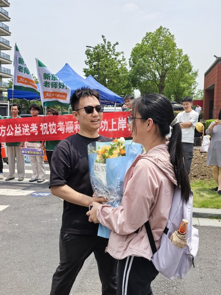 来自滨江区的一位女生,出来就收到了爸爸妈妈送来的一大捧鲜花。
