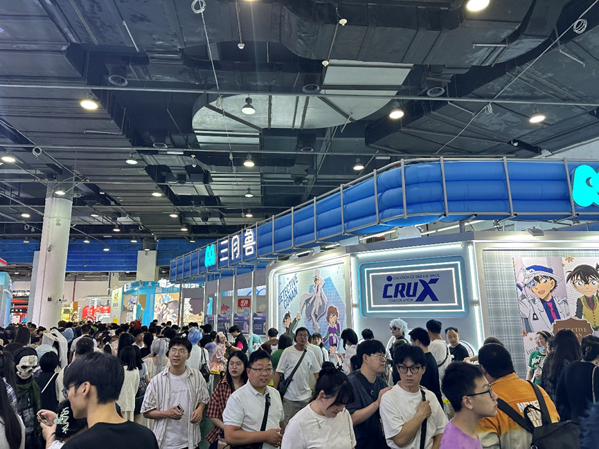 “现场参与活动的,还能赠送相应礼品。今年,其余三个展位还带来人气IP的热门周边首发贩售,深受大家的喜欢。”翻翻动漫工作人员蔡朔翔表示,端午节假期的第一天,客流数量就远超去年的单日巅峰,“即使在雨天的情况下,二次元爱好者的热情依旧不减。”