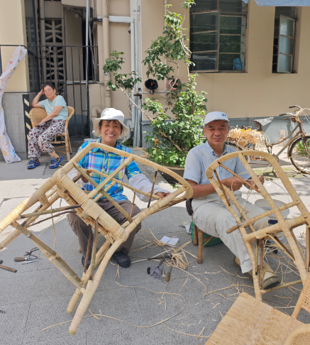 李师傅对自己的手艺很自信:“星期天我在浙大求是新村编藤椅,院士教授也向我问好,他们坐的藤椅都是我编的。”