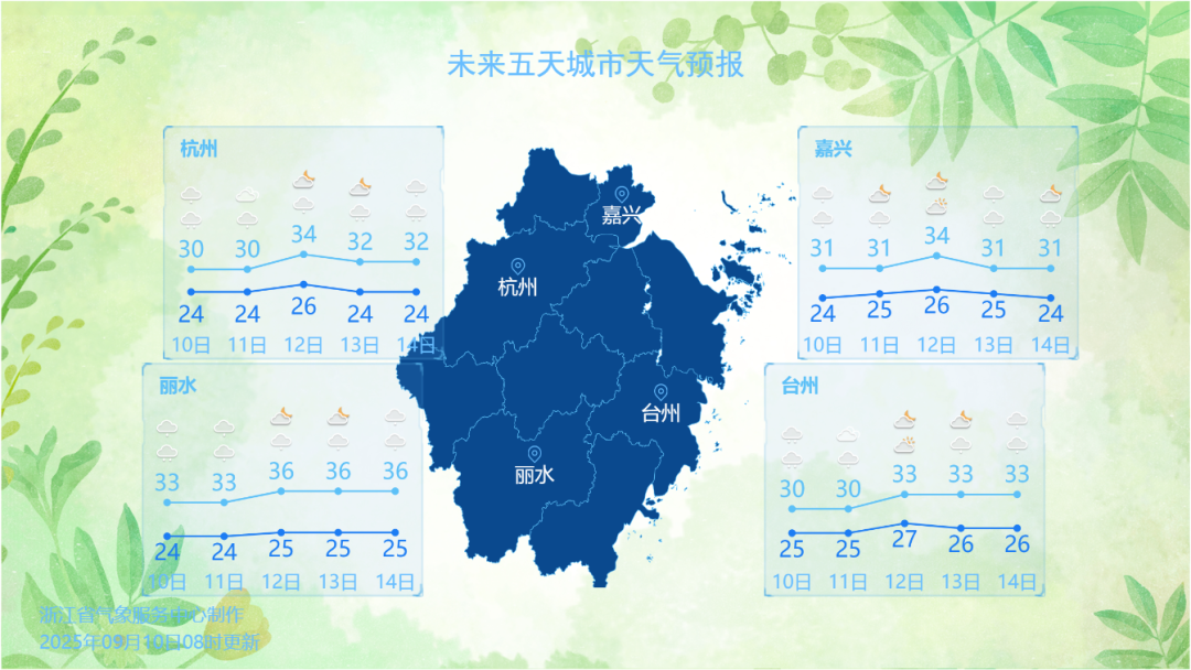 昨天,浙北高温熄火,但浙中南的气温仍然嚣张,最高气温36-38℃局地39-40℃。不过从今天开始,高温终于要全面缓和了。除了12日前后,浙南高温还偶有冒头外,其余大部接下去的天气,就不再是热火朝天。伴随着各种破纪录,今年火辣辣的盛夏终于结束了。