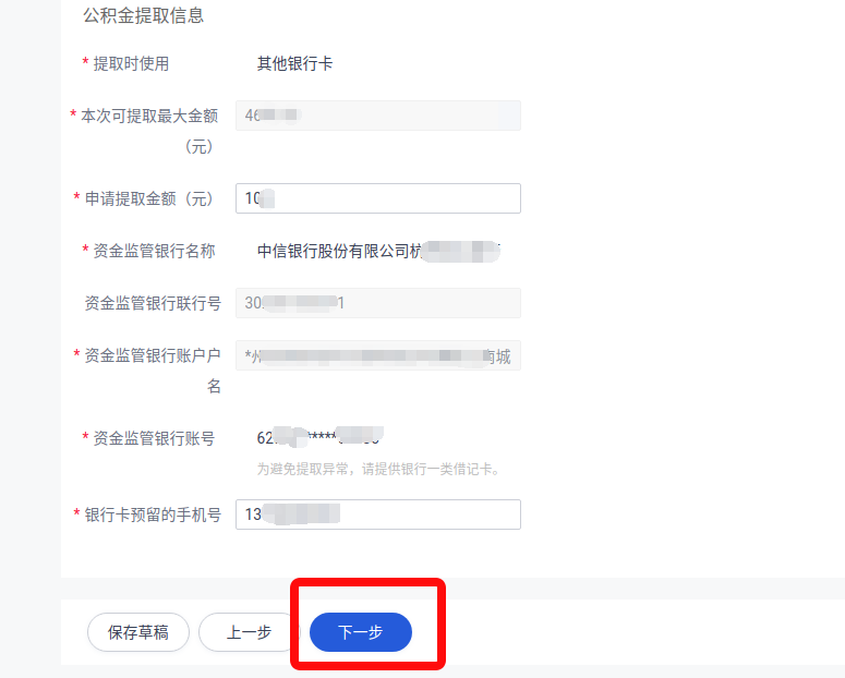 6.“申请提取金额”不得大于“本次可提取最大金额”。