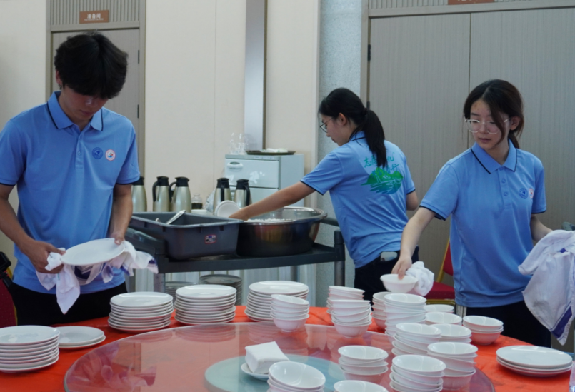 与此同时,杭电青年志愿者在村内会务中心协助整理物资、布置会场,在农家乐帮忙打扫卫生、整理客房,亲身体验培训配套产业的每一个细节。