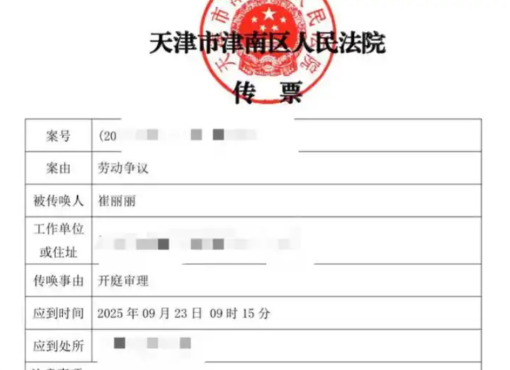 2025年4月8日,考虑到公司可能不服此裁决,崔丽丽先将企业起诉至天津市津南区人民法院。
