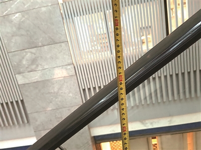 记者现场测量,自动扶梯踏板到扶手垂直距离不足一米,成人站在扶梯上,腰部以上超出扶手上沿,扶梯运行到高处往地面看,记者也有些心慌。