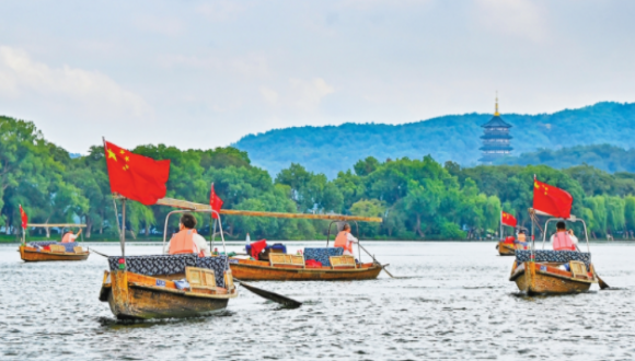 In order to greet the National Day holiday, the West Lake Pleasure Boat enters the"red time" in advance: from the overhaul of the boat to the environmental improvement of the pier, and from the training of service skills to the explanation of receiving guests with a smile, every detail embodies the dedication and accountability of "boat crew". During the holiday, they warmly greet the guests from all over the world, and tell the story of the West Lake in a professional manner.