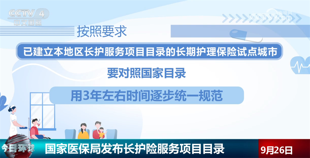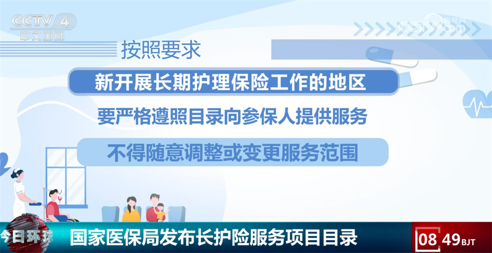 按照要求,新开展长期护理保险工作的地区,要严格遵照《目录》向参保人提供服务,不得随意调整或变更服务范围;已建立本地区长护服务项目目录的长期护理保险试点城市,要对照国家目录,用3年左右时间逐步统一规范。