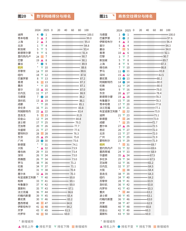 近日,清华大学在北京发布《国际交往中心城市指数2025》报告。作为本次指数新增城市,杭州凭借数字网络、科技创新、宜游环境等成功上榜,并位列全国综合排名第4名。