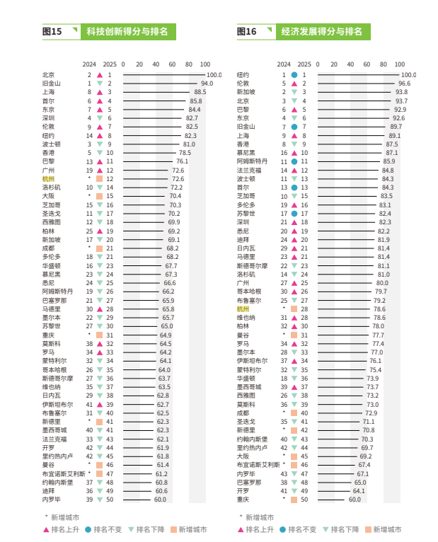 杭州在数字网络和科技创新等方面的综合得分与排名