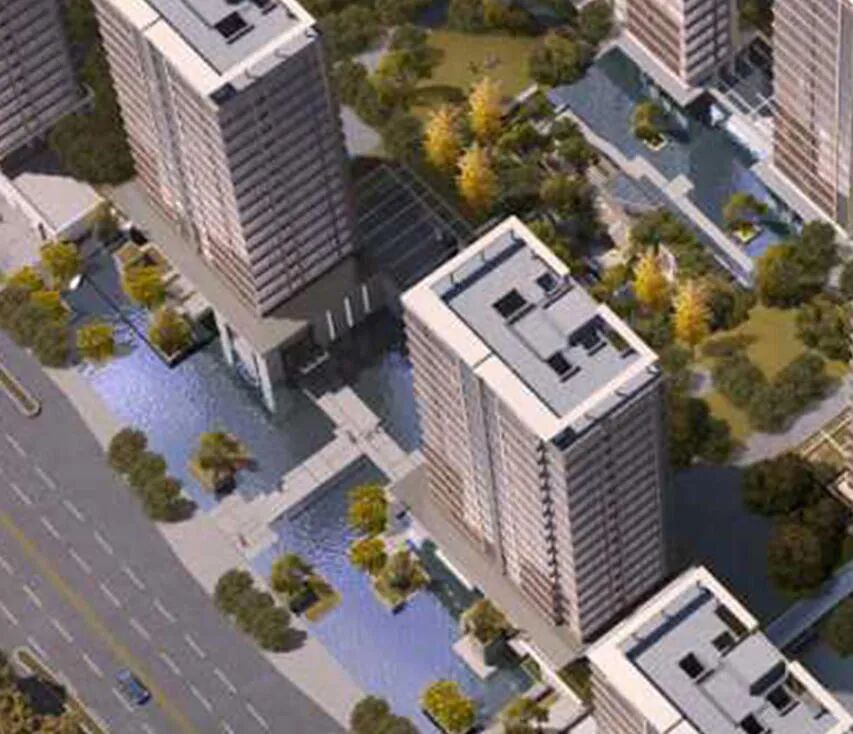 兴耀元成项目位于金乔街与海达北路交界处,临近医药港,占地面积38629㎡,容积率2.1,总建筑面积128778㎡,其中地上建筑面积83278㎡,地下建筑面积45500㎡,绿地率35%,建筑密度22%。