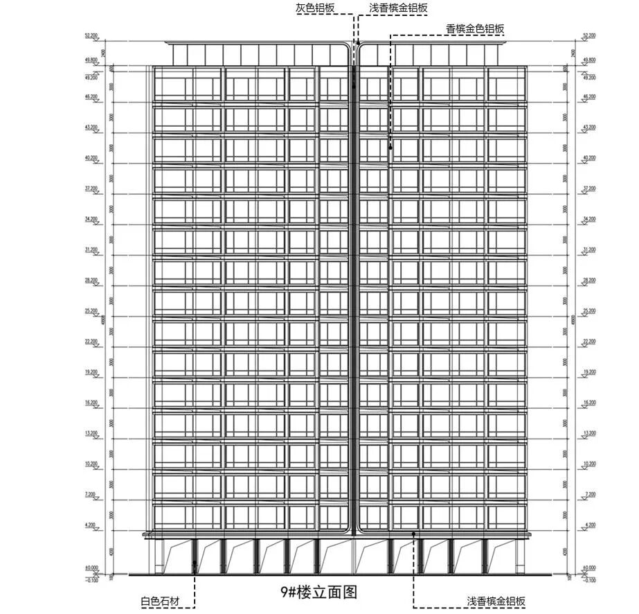 所有楼幢底层全部架空,架空层层高4.2米,标准层层高3米。架空层采用了白色石材搭配浅香槟金铝板的设计。上面则是香槟金铝板、灰色铝板搭配大面积玻璃,并且是公建化封闭式阳台设计,从效果图看上去,整体非常通透,质感十足。