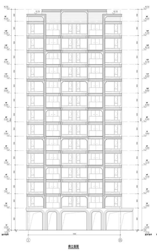 整个项目占地14157㎡,容积率只有1.7,总建筑面积37450㎡,建筑密度22%,绿地率35%,建筑高度49.4米。