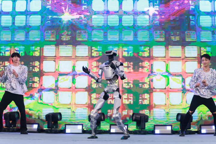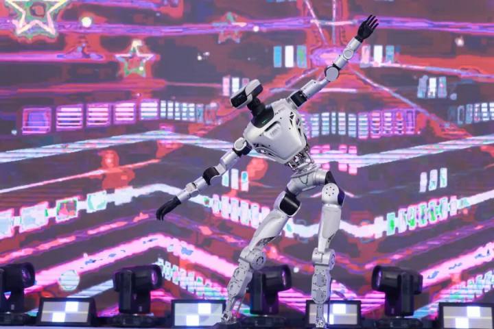 在舞台表演区域,智元远征A2机器人就像一位技艺高超的鼓手,与人类音乐家同台演出;身高1.65米的Oli将为你跳一支它最拿手的舞蹈;宇树U2机器人不管是热情奔放的街舞,还是优雅柔美的民族舞,都能轻松驾驭。