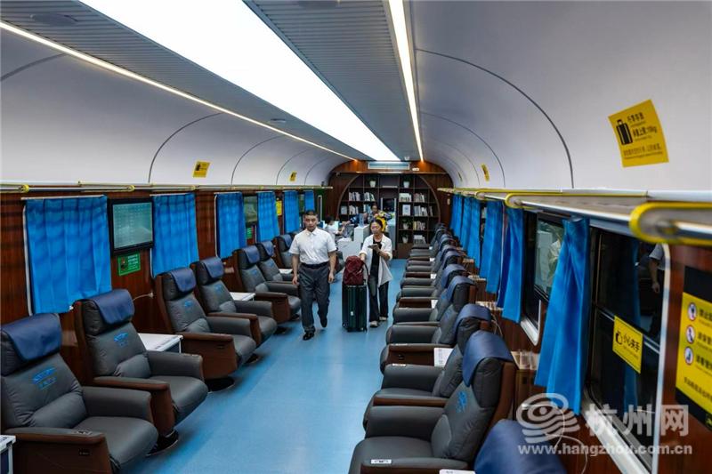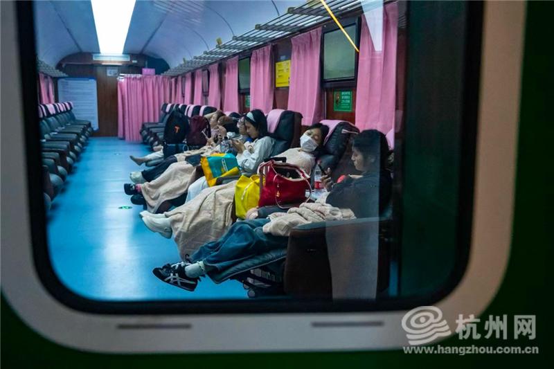 休息区末端车厢是女性乘客车厢,女性过夜休息时,服务人员会优先安排至此。