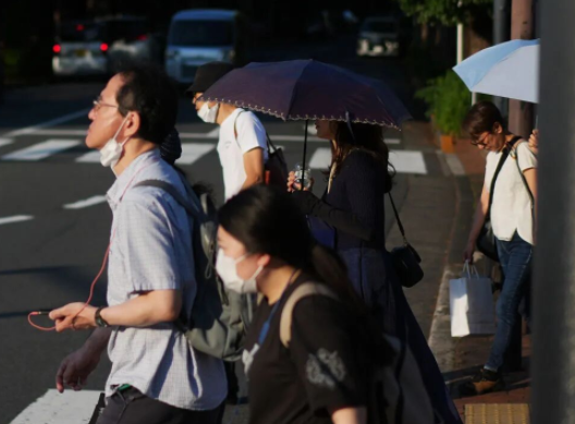6月18日,在日本东京,行人在街头行走。新华社记者 贾浩成 摄