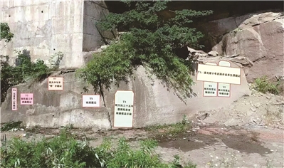 这处石刻群分布于四川巴中南江县的南江河岸边的一片石壁上。石壁位于水面上方约5米,石刻分布面积约24平方米,题刻性质类似如今国道旁的大字标语,比如明代万历年间禁止早婚的一处石刻:“都察院示谕,军民人等知悉:今后男婚须年至十五、六岁以上方许迎娶!违者,父兄重责枷号,地方不呈官者,一同枷责”。