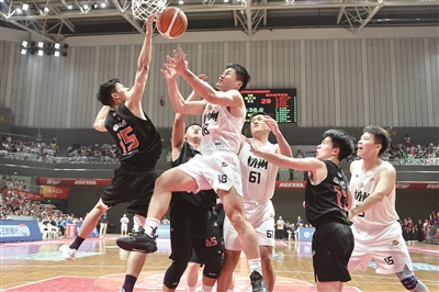 杭州队18号葛郑波跃起争抢篮板(资料图) 记者 夏阳 摄