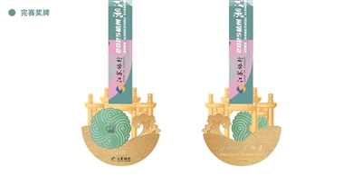 会上,2025“湘马”参赛服与完赛奖牌揭开面纱。赛事奖牌设计融合湘湖文化元素,主体以湖水、城山牌坊与独木舟为灵感,配以玉石质地的水纹旋转装饰。半程马拉松与欢乐跑完赛奖牌分别采用金色与银色。