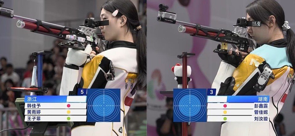 晋级决赛的浙江队阵容堪称豪华,三位选手分别为世锦赛冠军韩佳予、巴黎奥运会女子10米气步枪亚军黄雨婷以及今年三站世界杯冠军及资格赛世界纪录保持者王子菲。对手湖南队管佳妮、刘汝璇、彭鑫露的实力同样不容小觑,尤其是16岁小将彭鑫露,上个月刚刚夺得宁波射击世界杯的冠军。决赛现场,中国射击名宿王义夫也赶来观战。