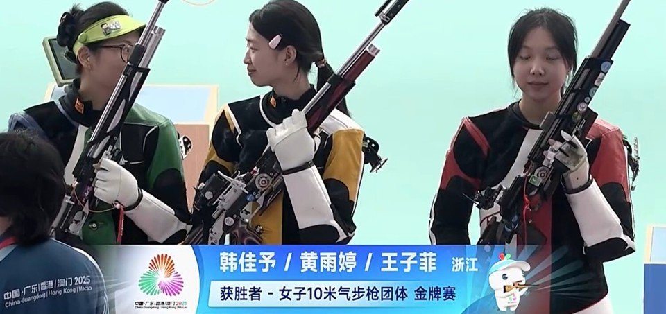 全运会女子10米气步枪团体赛浙江队成功夺冠 黄雨婷收获全运首金