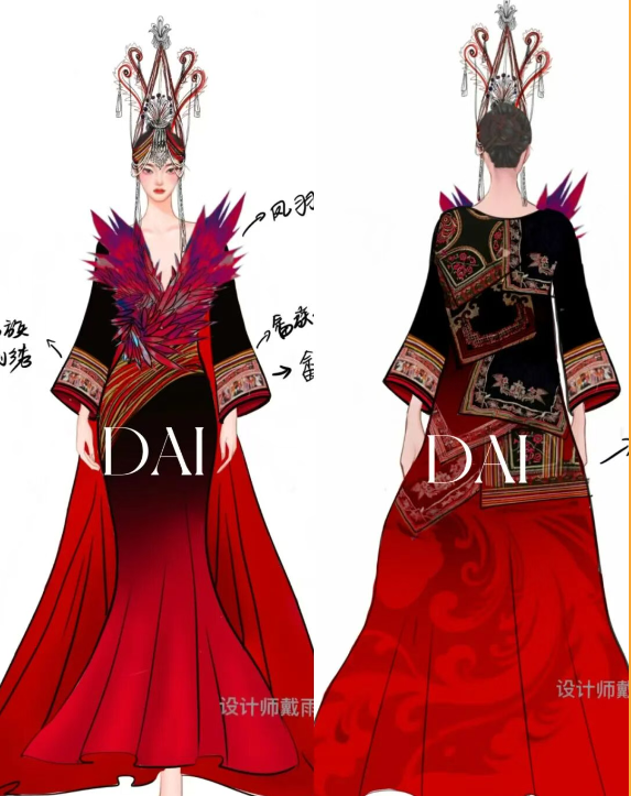 戴雨熙参与创作的“畲凤”品牌高级定制系列作品。