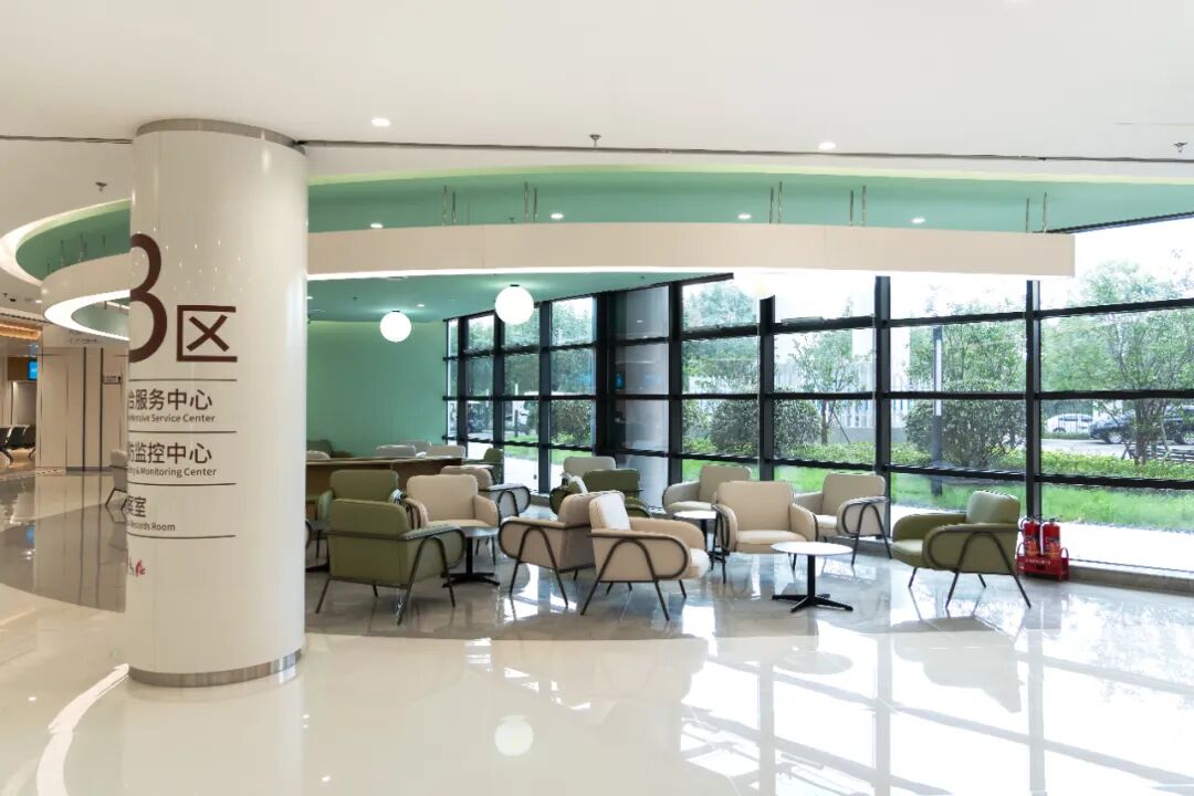 浙大妇院余杭院区打破传统医院布局模式,创新采用“双翼与中身”的仿生学设计理念,将产科、妇科南北楼宇通过中央医疗街串联,构建成一条四通八达的 “医疗服务高速通道”,让患者就诊动线更清晰、更高效。