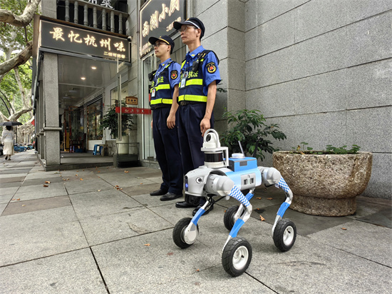 “妈妈你看!机器狗!”近日,上城区清波街道南山路上,总能听见孩子们惊喜的呼喊。循声望去,一只银灰色四足机器狗正灵活穿梭在人群中——它身着亮眼的蓝色“制服”,四条腿踩着小巧的滑轮,行动起来又萌又飒,成了这条街上最吸睛的“智能明星”,路过的市民游客纷纷掏出手机拍照,连外地游客都忍不住驻足感叹:“杭州的街面管理都这么高科技了!”