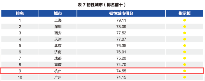 在美丽城市和韧性城市方面,杭州都排名第9。