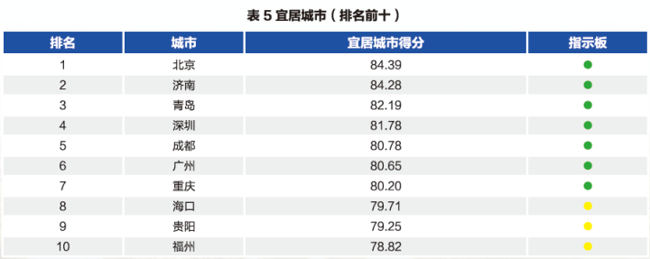 出乎意料的是在宜居城市方面,杭州没有进入到前10。