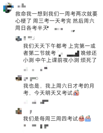 社交媒体上,也有高三学生在吐槽考试频率太高。