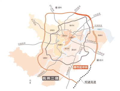 都市快报讯 杭州都市区中环处在杭州绕城高速和杭州“二绕”之间,串联了杭州“第三中心”以及良渚、萧山、富阳、临平和钱塘等辅城。
