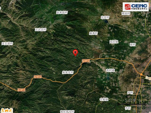 本次地震周边5公里内的村庄有寺坪村、鱼龙沟村、横河村、石梯村、解家庄村、窑宽村、米家寨村、邓家庄村、炭庄、龙坊崖村,20公里内的乡镇有阳坡乡、奇村镇、闫庄镇、合索乡、东马坊乡、王家庄乡。