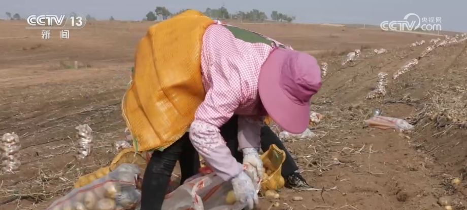 这就是刚才记者已经收获的土豆,五颜六色的,有红皮的、有黄皮的。土豆虽然小,但是外观非常完整。它们为什么会被农民遗落在田野里?
